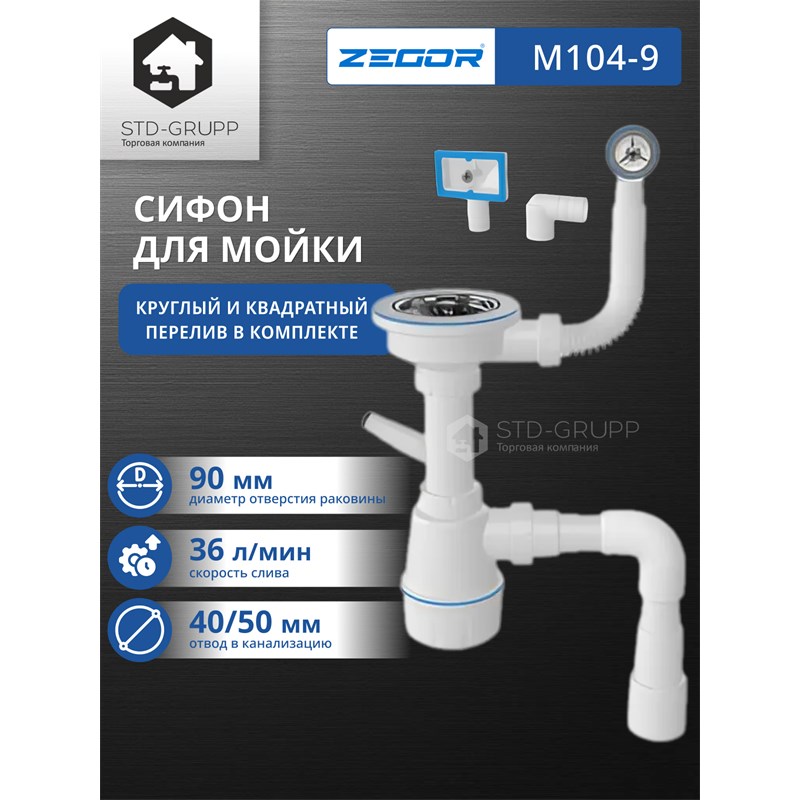 409010021007: Z-PRO 1007, Сифон для мойки 3 1/2х40 с метал.решетк, с прямоуг. и круглым переливами (12) На складе: 6 1 736.00 ₽