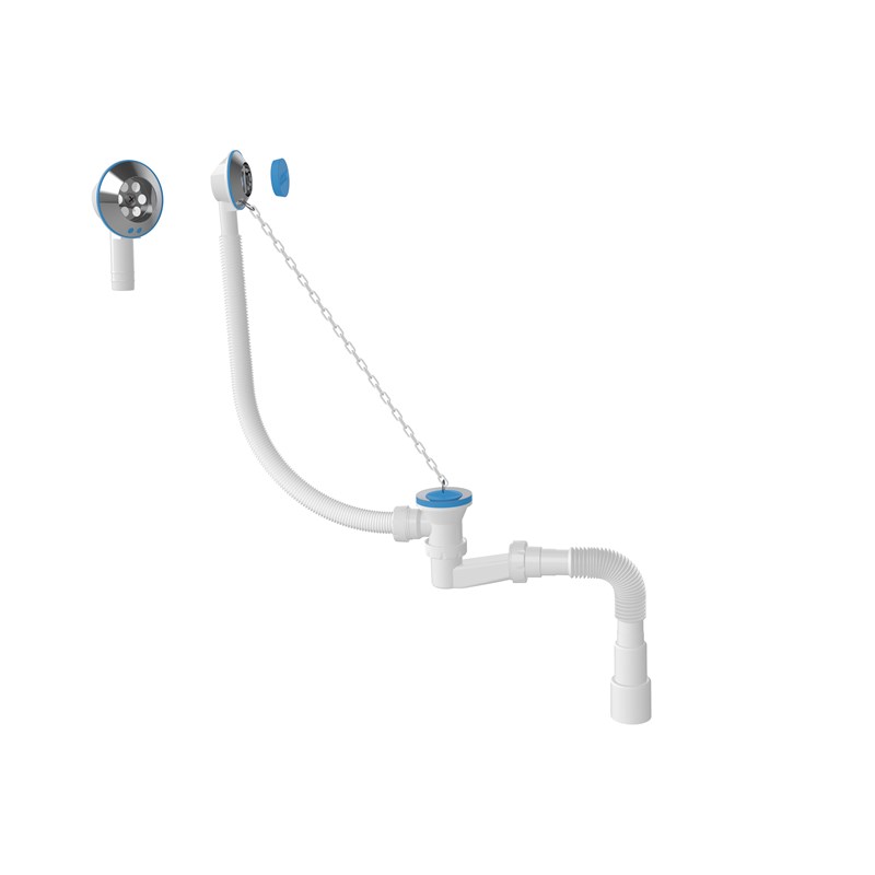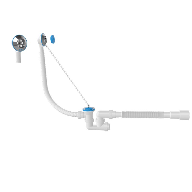 4080300521: V152-1, Сифон для ванны низкий h 120mm,выпуск 70мм,длина винта 50мм,пробка с пластиковой цепочкой На складе: 158 334.00 ₽