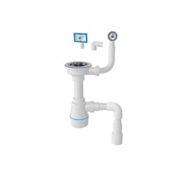 Cифон унивесальный для мойки 3 1/2 с двумя переливами (без отвода для стиральной машины), все металлические части из нержавеющей стали, пластиковый болт 45 мм,выход гибкая трубаØ 40/50мм