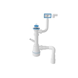 Сифон для мойки с разборным выпуском 70 мм с прямоугольным переливом, длина винта 22 мм, большая колба, выход гибкая труба 1 1/2 - Ø40/50, с пробкой