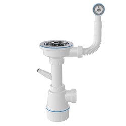 Сифон для керамической мойки с круглым переливом, выпуск 3 1/2, пластиковый винт 45 мм, с отводом для стиральной машины (без гибкой трубы),выход 11/2(Ø 40)