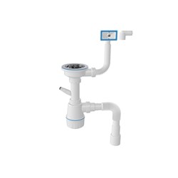 Сифон для нержавеющей мойки с выпуском 3 1/2 с прямоугольным переливом, с отводом для стиральной машины , большая колба, латунный винт 25мм, выход гибкая труба 1 1/2 - Ø40/50