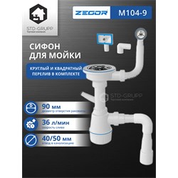 Cифон унивесальный для мойки 3 1/2 с двумя переливами (без отвода для стиральной машины), все металлические части из нержавеющей стали AISI304, латунный болт 45 мм,выход гибкая трубаØ 40/50мм