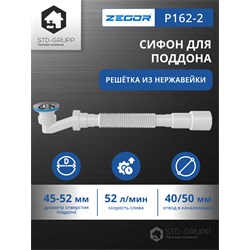 Сифон для душевого поддона низкий h 70 мм, выпуск 64 мм, длина винта 50 мм, с гибкой трубой 1 1/2" - Ø40/50мм