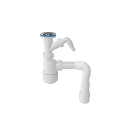 Cифон для умывальника с разборным выпуском 64 мм, с отводом для стиральной машины, длина винта 65 мм, выход гибкая труба 1 1/4 - Ø40/50