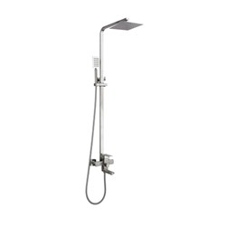 Смеситель для ванной с душевой системой, техналогия производства токарная обработка, материал корпуса нерж. cталь SUS 304 (пищевая), с пов. плоским изливом 150мм 360°, картридж ø35, без покрытия, встр. в корпус картриджное переключение на душ и душевую систему. 4шт/уп.