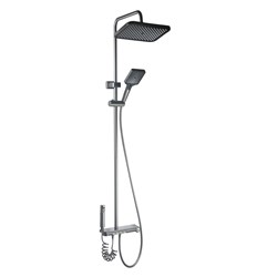 душевая система для ванной 4 позиционная, технология производства токарная обработка, материал корпуса Латунь (Lt) и алюминий, встроенный излив, покрытие тёмный графит матовый, встр. в корпус кнопочное переключение на душевую систему(тропический душ), переносную лейку с душевым шлангом и гигиеническую лейку и гибким шлангом