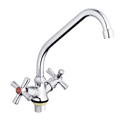 Смеситель для кух. мойки / умывальника, технология производства литьё под давлением, материал корпуса цинк (Zn), с пов. круглым изливом 360°, керамическая букса (1/2) 180°, покрытие хром, крепление гайка. Длина подводки 55см. 1/20шт/уп.