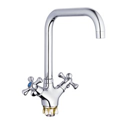 Смеситель для кух. мойки, технология производства литьё под давлением, материал корпуса цинк (Zn), с пов. Г-образным изливом 360°, керамическая букса (1/2) 180°, покрытие хром, крепление гайка (корона). Длина подводки 55см. 10шт/уп.