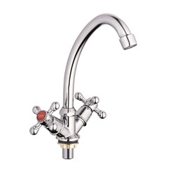 Смеситель для кух. мойки / умывальника, технология производства литьё под давлением, материал корпуса цинк (Zn), с пов. круглым изливом 360°, керамическая букса (1/2) 180°, покрытие хром, крепление гайка. Без подводки в комплекте. 2/20шт/уп.