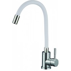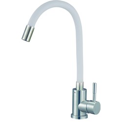 см-ль для кух. мойки, технология производства токарная обработка, материал корпуса нерж. cталь SUS 304 (пищевая), с пов. гибким круглым изливом 360° цвет серый, картридж ø35, , без покрытия, крепление гайка-втулка. Длина подводки 55см. 10шт/уп.