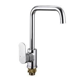 Смеситель для кух. мойки, технология производства литьё под давлением, материал корпуса цинк (Zn), с пов. Г-образным круглым изливом 360°, картридж ø35, покрытие хром, крепление гайка (корона). Длина подводки 55см. 10шт/уп.