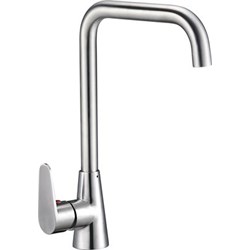 см-ль для кух. мойки, технология производства токарная обработка, материал корпуса нерж. cталь SUS 304 (пищевая), с пов. Г-образным круглым изливом 360°, картридж ø35, , без покрытия, крепление гайка-втулка. Длина подводки 55см. 10шт/уп.
