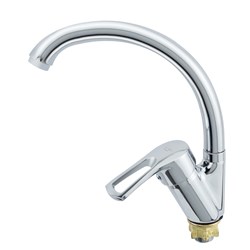 см-ль для кух. мойки, технология производства литьё под давлением, материал корпуса цинк (Zn), с пов. круглым изливом 360°, картридж ø40, покрытие хром, крепление гайка (корона). Длина подводки 55см. 10шт/уп.
