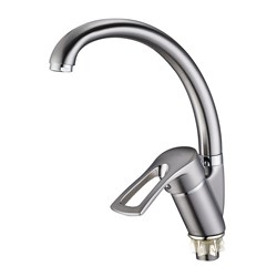 см-ль для кух. мойки, технология производства литьё под давлением, материал корпуса цинк (Zn), с пов. круглым изливом 360°, картридж ø40, покрытие САТИН, крепление гайка (корона). Длина подводки 55см. 10шт/уп.