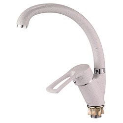см-ль для кух. мойки, технология производства литьё под давлением, материал корпуса цинк (Zn), с пов. круглым изливом 360°, картридж ø40, покрытие БЕЛЫЙ гранит, крепление гайка (корона). Длина подводки 55см. 10шт/уп.