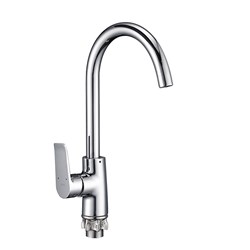 см-ль для кух. мойки, технология производства литьё под давлением, материал корпуса цинк (Zn), с пов. круглым изливом 360°, картридж ø35, покрытие хром, крепление гайка (корона). Длина подводки 55см. 10шт/уп.
