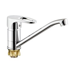 см-ль для кух. мойки, технология производства литьё под давлением, материал корпуса латунь (Lt), с пов. плоским изливом 250мм 360°, картридж ø40, покрытие хром, крепление гайка (корона). Длина подводки 55см. 10шт/уп.
