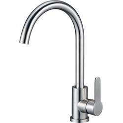 см-ль для кух. мойки, технология производства токарная обработка, материал корпуса нерж. cталь SUS 304 (пищевая), с пов. круглым изливом 360°, картридж ø35, , без покрытия, крепление гайка-втулка. Длина подводки 55см. 10шт/уп.