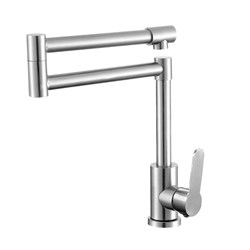 см-ль для кух. мойки, технология производства токарная обработка, материал корпуса нерж. cталь SUS 304 (пищевая), с пов. двойным круглым изливом 360°, картридж ø35, , без покрытия, крепление гайка-втулка. Длина подводки 55см. 10шт/уп.