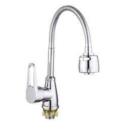 см-ль для кух. мойки, технология производства литьё под давлением, материал корпуса цинк (Zn), с пов. гибким изливом 360°, картридж ⌀35, покрытие хром, крепление гайка (корона). Длина подводки 55см. 10шт/уп.