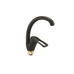 см-ль для кух. мойки, технология производства литьё под давлением, материал корпуса цинк (Zn), с пов. круглым изливом 360°, картридж ø40, покрытие ЧЕРНЫЙ матовый гранит, крепление гайка (корона). Длина подводки 55см. 10шт/уп.