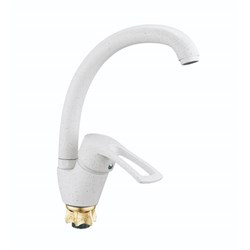 см-ль для кух. мойки, технология производства литьё под давлением, материал корпуса цинк (Zn), с пов. круглым изливом 360°, картридж ø40, покрытие БЕЛЫЙ матовый гранит, крепление гайка (корона). Длина подводки 55см. 10шт/уп.