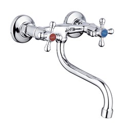 Смеситель для кух. мойки настенный, технология производства литьё в песчаную форму, материал корпуса цинк (Zn), с пов. S-образным круглым изливом 360°, керамическа букса (1/2) 180°, покрытие хром. 2/20шт/уп.