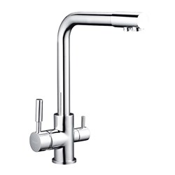 см-ль для кух. мойки, технология производства литьё под давлением, материал корпуса латунь (Lt), с пов. Г-образным изливом 360° и подключением к фильтру с питьевой водой, картридж ø35 / ø25, покрытие хром, крепление гайка-втулка. Длина подводки 55см. 10шт/уп.