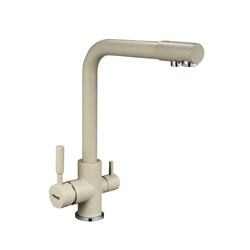 см-ль для кух. мойки, технология производства литьё под давлением, материал корпуса латунь (Lt), с пов. Г-образным изливом 360° и подключением к фильтру с питьевой водой, картридж ø35 / ø25, покрытие БЕЖЕВЫЙ гранит, крепление гайка-втулка. Длина подводки 55см. 10шт/уп.