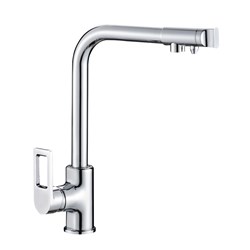 см-ль для кух. мойки, технология производства литьё под давлением, материал корпуса латунь (Lt), с пов. Г-образным изливом 360° и подключением к фильтру с питьевой водой, картридж ø35 / ø25, покрытие хром, крепление гайка-втулка. Длина подводки 55см. 10шт/уп.