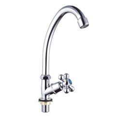 Смеситель моно (одна вода) для умывальника / мойки, технология производства литьё под давлением, материал корпуса цинк (Zn), с пов. круглым изливом 360°, керамическая букса (1/2) 180°, покрытие хром, крепление гайка. 3/30шт/уп.