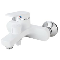 См-ль для ванной, технология производства литьё под давлением, материал корпуса пластик (ABS), с монолитным изливом, картридж ø35, покрытие белое матовое, встр. в корпус картриджное переключение на душ .24шт/уп