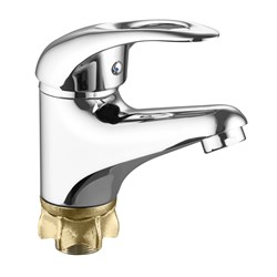 см-ль для умывальника литой, технология производства литьё в песчаную форму, материал корпуса цинк (Zn), картридж ø40, покрытие хром, крепление гайка (корона). Длина подводки 55см. 10шт/уп.