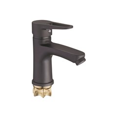 см-ль для умывальника литой, технология производства литьё под давлением, материал корпуса цинк (Zn), картридж ø35, покрытие черное, крепление гайка (корона). Длина подводки 55см. 10шт/уп.