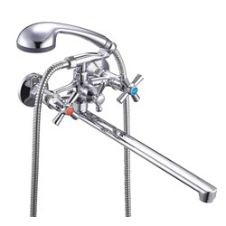 Смеситель для ванной, технология производства литьё в песчаную форму, материал корпуса цинк (Zn), с пов. плоским изливом 360°, керамическая букса (1/2) 180°, покрытие хром, усиленное шаровое переключение на душ. 10шт/уп.