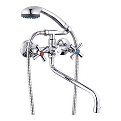 Смеситель для ванной, технология производства литьё в песчаную форму, материал корпуса цинк (Zn), с пов. S-образным круглым изливом 360°, керамическая букса (1/2) 180°, покрытие хром, двухпозиц. картриджное переключение на душ. 10шт/уп.