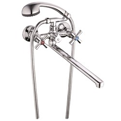 Смеситель для ванной, технология производства литьё в песчаную форму, материал корпуса цинк (Zn), с пов. S-образным круглым изливом 360°, керамическая букса (1/2) 180°, покрытие хром, двухпозиц. картриджное переключение на душ. 10шт/уп.