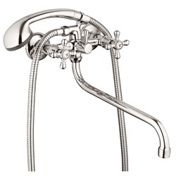Смеситель для ванной, технология производства литьё в песчаную форму, материал корпуса цинк (Zn), с пов. S-образным круглым изливом 360°, керамическая букса (1/2) 180°, покрытие хром, штоковое переключение на душ. 10шт/уп.