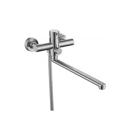 См-ль для ванной, технология производства токарная обработка, материал корпуса нерж. cталь SUS 304 (пищевая), с пов. круглым изливом 360°, картридж ø35, без покрытия, встр. в корпус картриджное переключение на душ