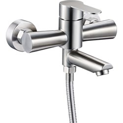 см-ль для ванной, технология производства токарная обработка, материал корпуса нерж. cталь SUS 304 (пищевая), с пов. круглым изливом 150мм 360°, картридж ø35, без покрытия, встр. в излив переключение на душ (переключение просходит поворотом излива). 8шт/уп.