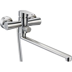 см-ль для ванной, технология производства токарная обработка, материал корпуса нерж. cталь SUS 304 (пищевая), с пов. круглым изливом 360°, картридж ø35, без покрытия, встр. в корпус картриджное переключение на душ. 10шт/уп.