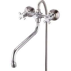 см-ль для ванной, технология производства литьё под давлением, материал корпуса цинк (Zn), с пов. круглым S-образным изливом 360°, керамическая букса (1/2) 90°, покрытие комбинированное цвет хром, встр. в корпус шаровое переключение на душ. 10шт/уп.