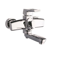 см-ль для ванной, технология производства литьё под давлением, материал корпуса цинк (Zn), с пов. литым изливом 150мм 360°, картридж ø35, покрытие хром, встр. в корпус картриджное переключение на душ. 10шт/уп.
