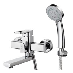 см-ль для ванной, техналогия производства литьё под давлением, материал корпуса цинк (Zn), с пов. литым плоским изливом 150мм 360°, картридж ø35, покрытие хром, встр. в корпус картриджное переключение на душ. 8шт/уп.