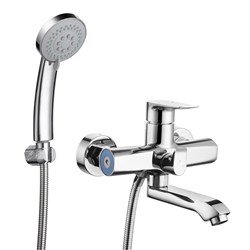 см-ль для ванной, технология производства литьё под давлением, материал корпуса цинк (Zn), с пов. литым изливом 150мм 360°, картридж ø35, покрытие хром, встр. в корпус картриджное переключение на душ. 8шт/уп.