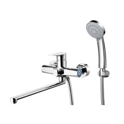см-ль для ванной, технология производства литьё под давлением, материал корпуса цинк (Zn), с пов. плоским изливом 360°, картридж ø35, покрытие хром, встр. в корпус картриджное переключение на душ. 8шт/уп.
