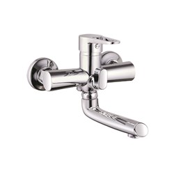 см-ль для ванной, технология производства литьё под давлением, материал корпуса цинк (Zn), с пов. литым изливом 150мм 360°, картридж ø35, покрытие хром, встр. в корпус картриджное переключение на душ. 10шт/уп.