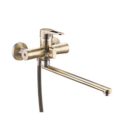 см-ль для ванной, технология производства литьё под давлением, материал корпуса цинк (Zn), с пов. плоским изливом 360°, картридж ø35, покрытие бронза, встр. в корпус картриджное переключение на душ. 10шт/уп.