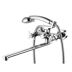 см-ль для ванной, техналогия производства литьё под давлением, материал корпуса цинк (Zn), с пов. плоским изливом 360°, керамическая букса (1/2) 180°, покрытие хром, встр. картриджное переключение на душ. 8шт/уп.